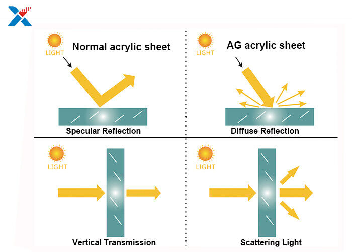 Attraverso la diffusione della luce e la riflessione diffusa, la riflessione viene ridotta per raggiungere lo scopo di prevenire vertigini e abbagliamenti, in modo da creare uno spazio visivo chiaro e trasparente,per avere un migliore godimento visivo.